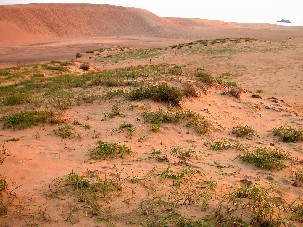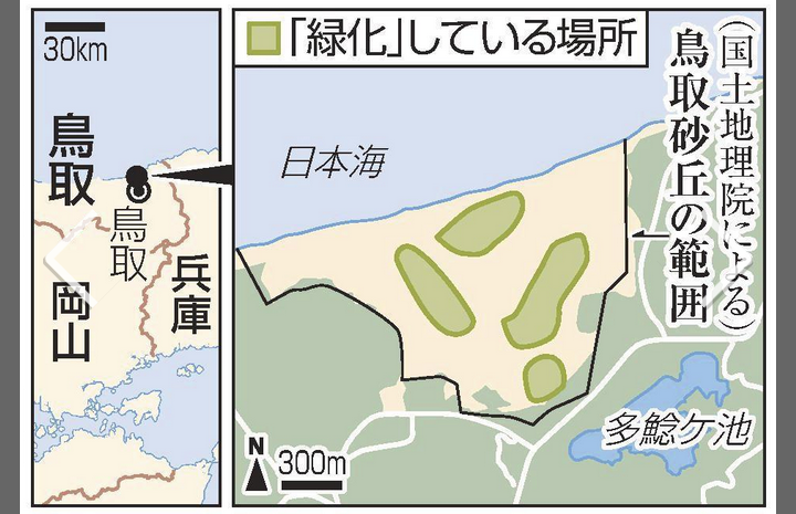 鳥取砂丘も海から砂が吹き寄せられなくなって草が生えやすくなったんだろ